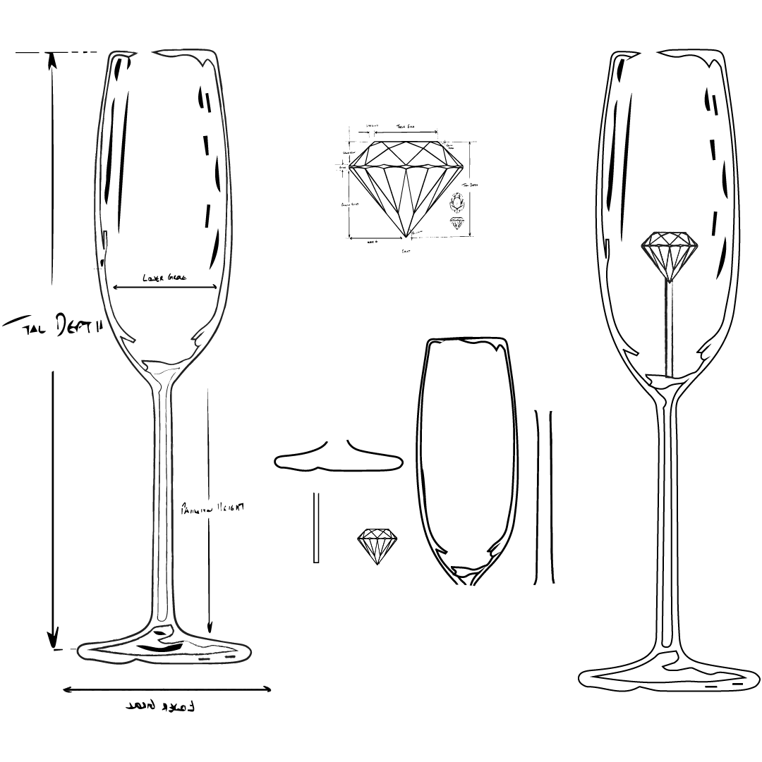 Kiekviena Moncel taurė prasideda nuo kruopštaus eskizo – kiekviena linija, kampas ir kreivė apgalvoti iki smulkmenų.
